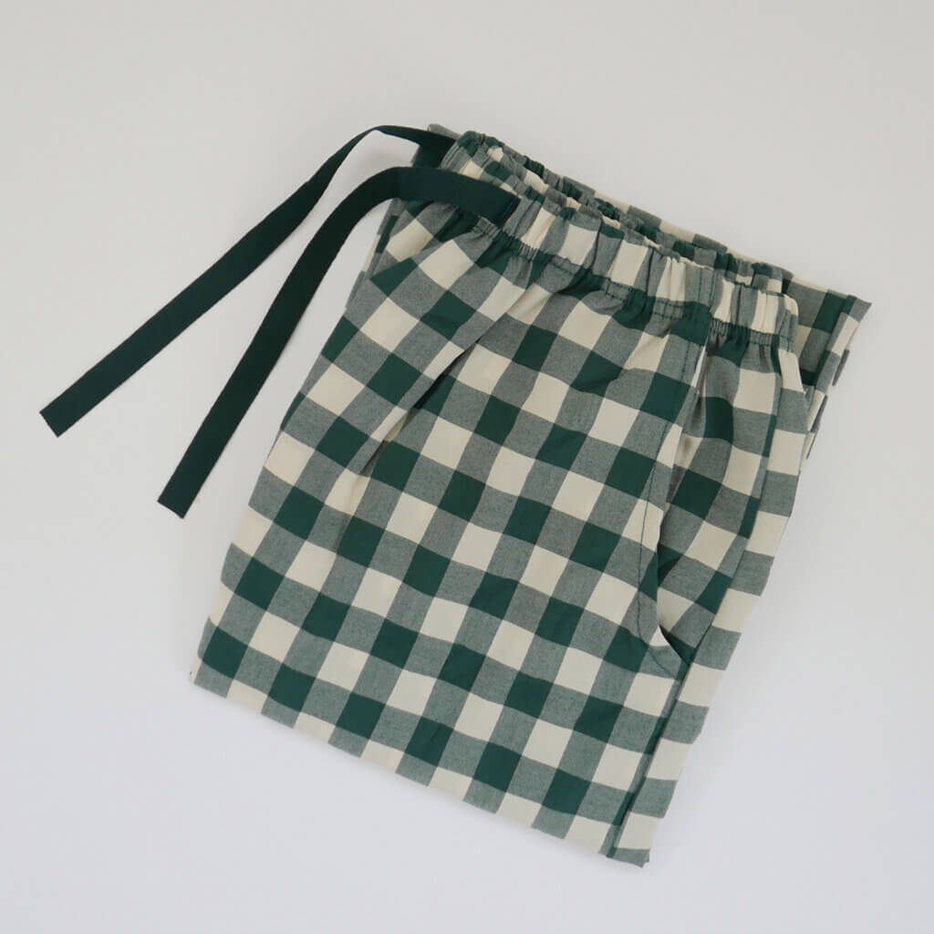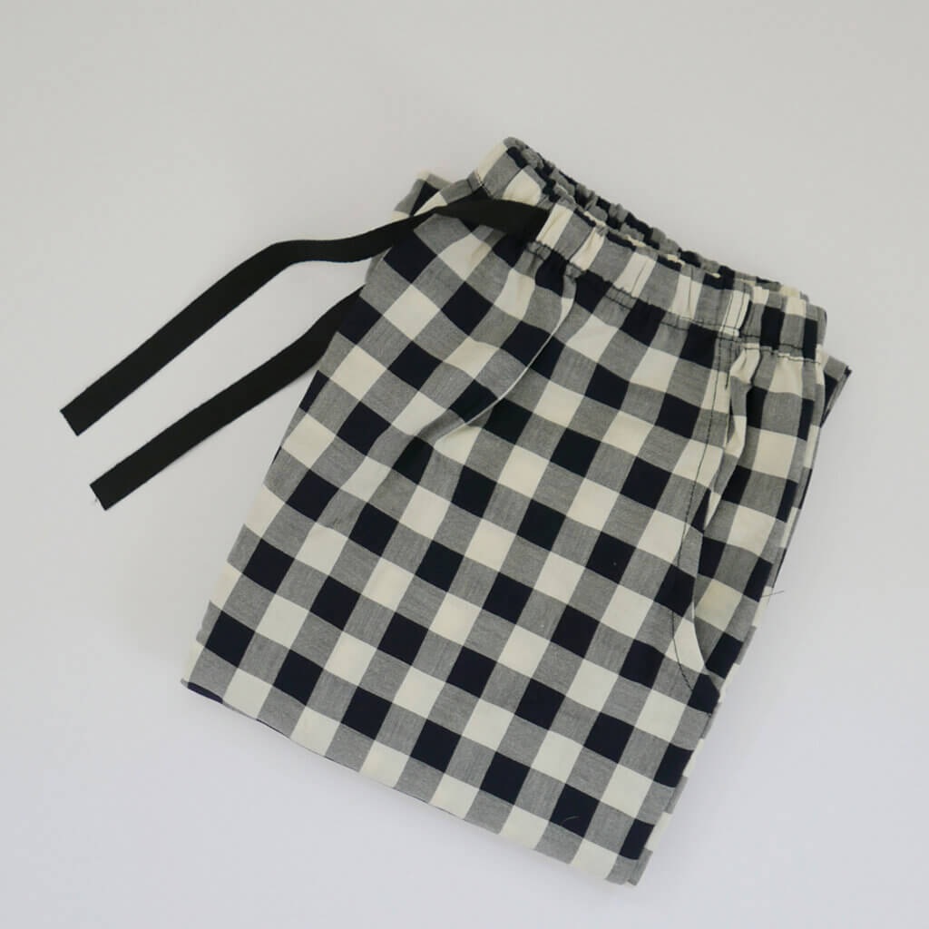 腰はゴムなので楽ちんです。春夏のリラックスウェアにぜひ。