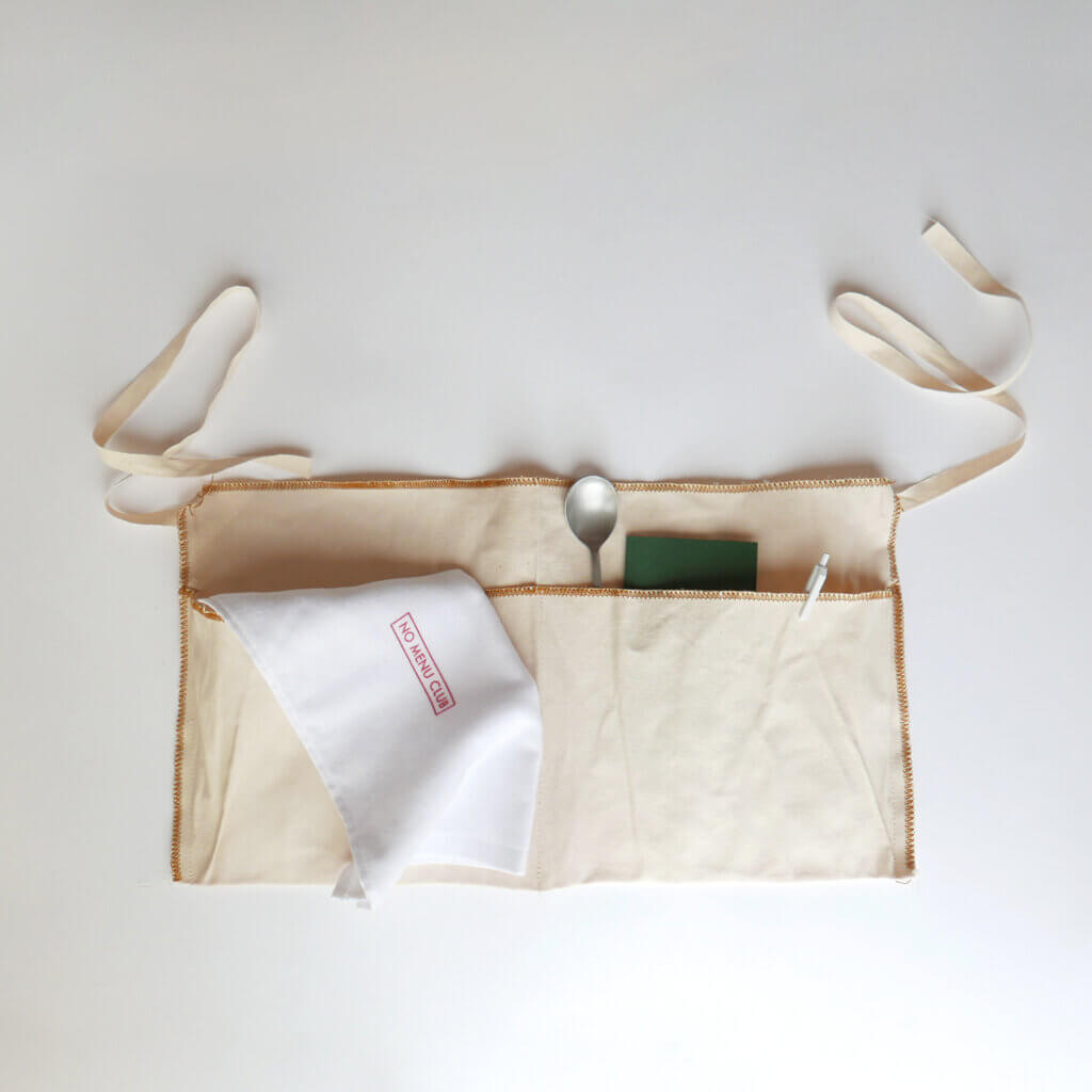 今回のお土産にはtôkが仕入れたポケットエプロンとNO MENU CLUBオリジナルのタオル付き。