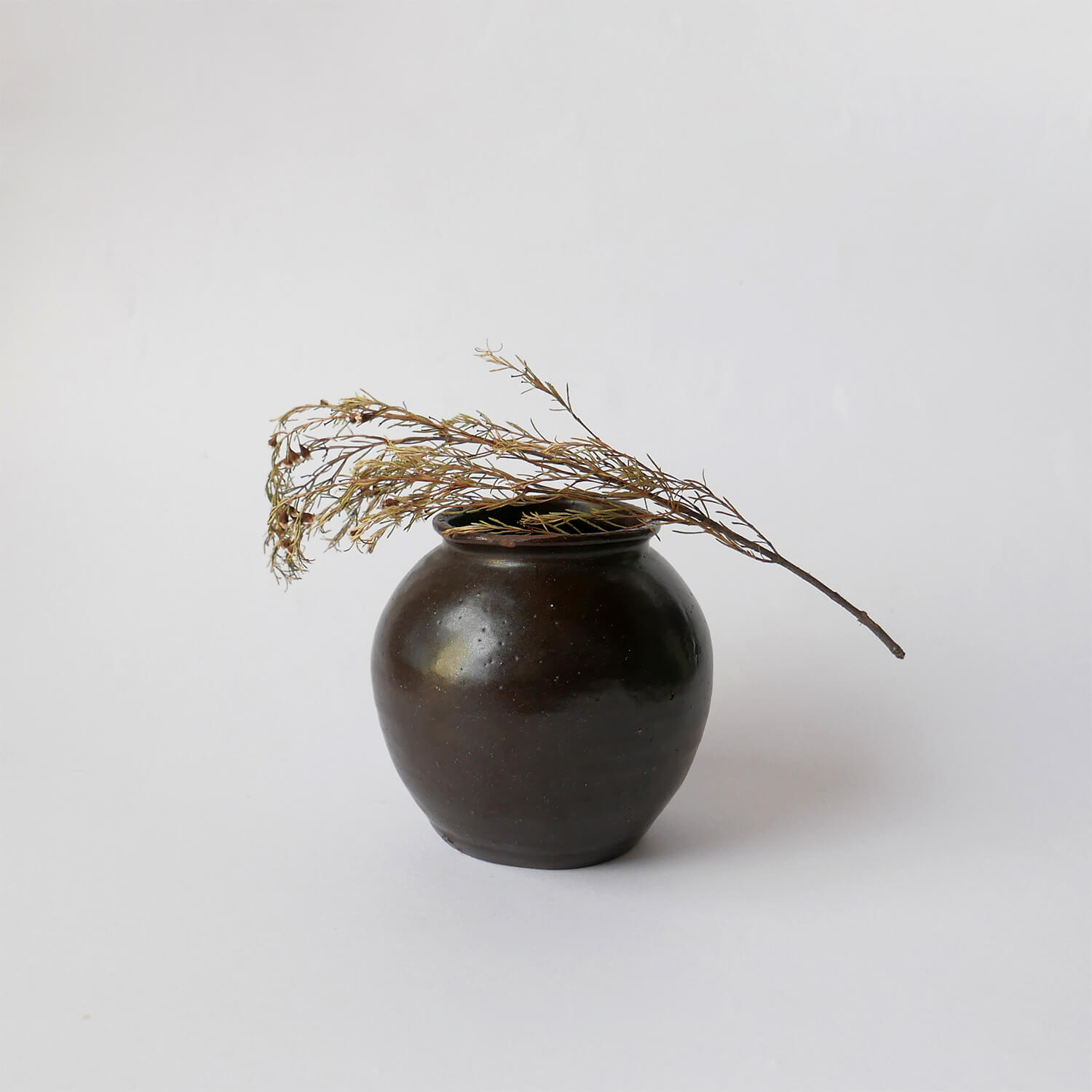 キムチなどを熟成・貯蔵しておくための大きな甕で知られる韓国の黒い焼き物、オンギ。