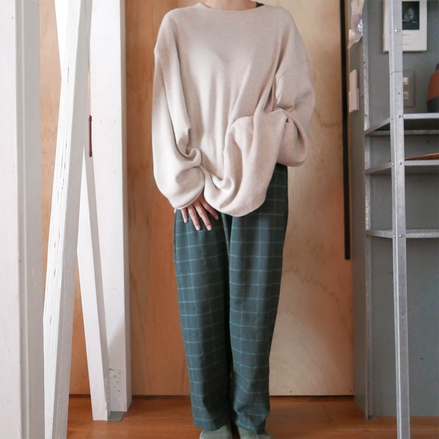 腰はゴムなので楽ちんです。秋冬のリラックスウェアにぜひ。