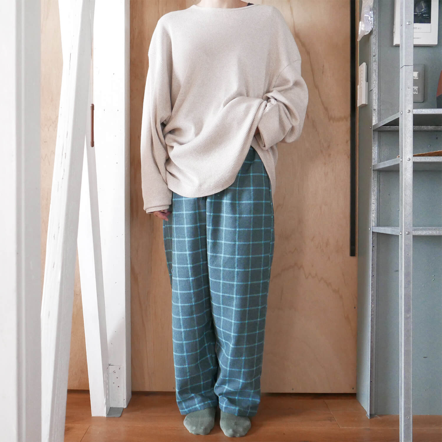 腰はゴムなので楽ちんです。秋冬のリラックスウェアにぜひ。