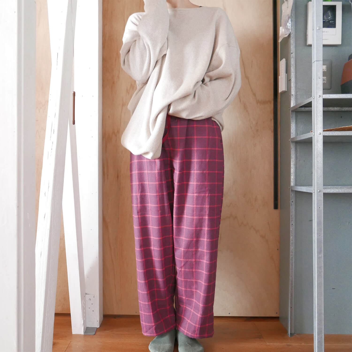 腰はゴムなので楽ちんです。秋冬のリラックスウェアにぜひ。