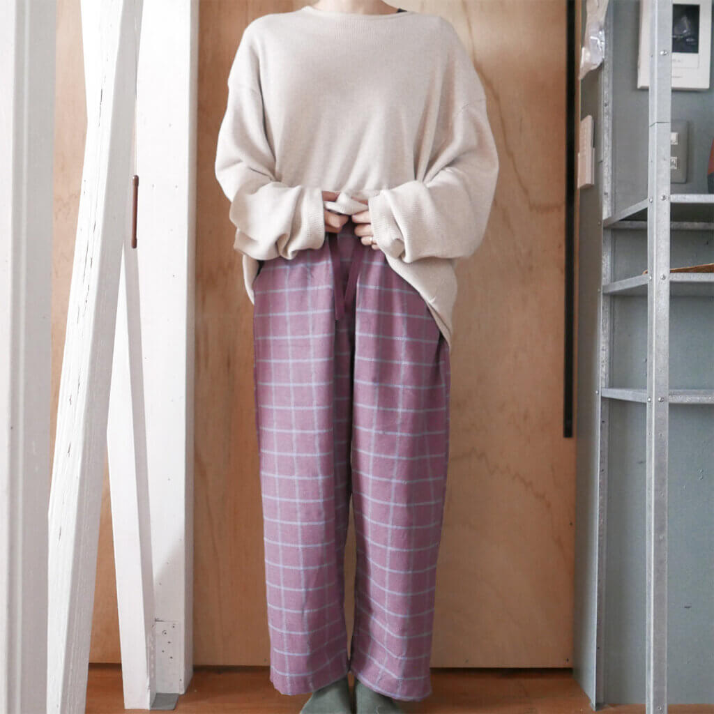 腰はゴムなので楽ちんです。秋冬のリラックスウェアにぜひ。