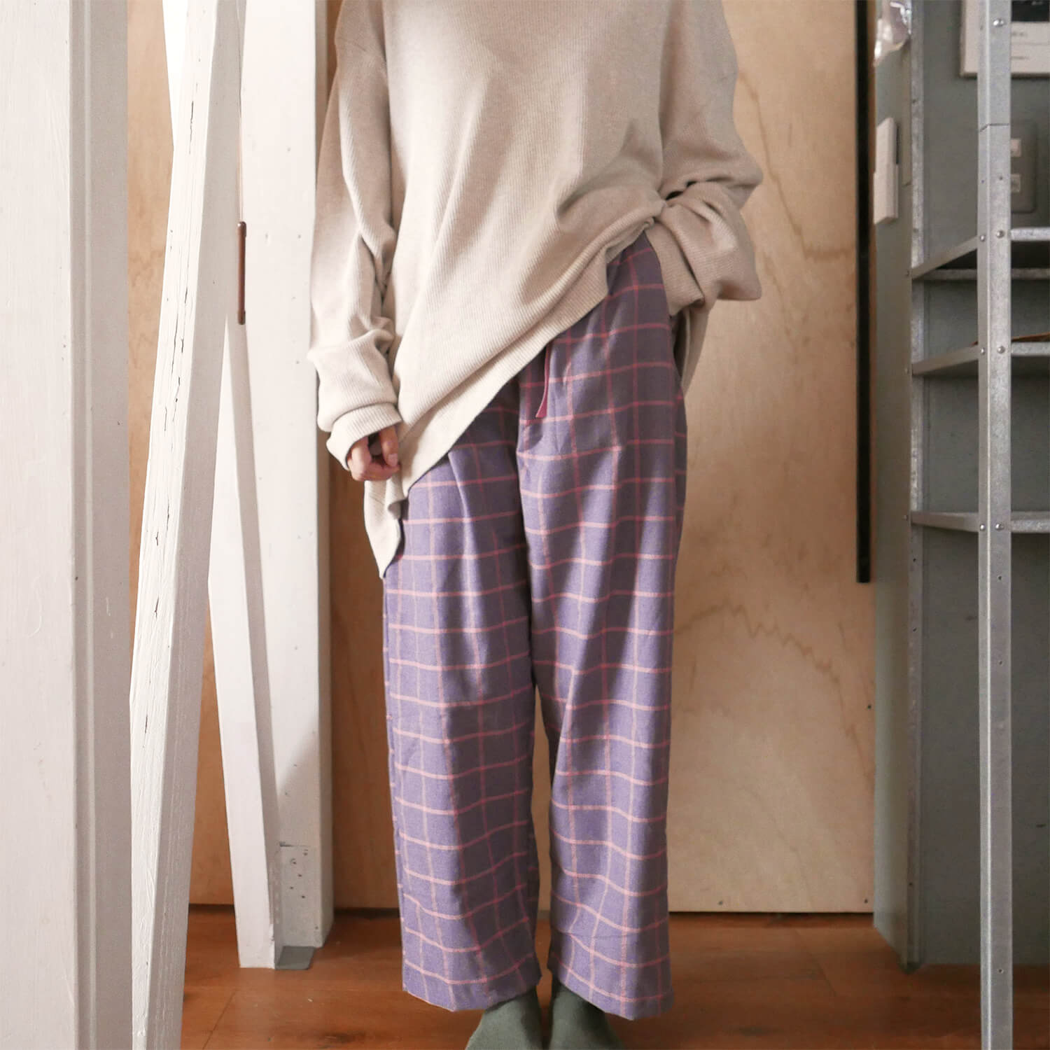 腰はゴムなので楽ちんです。秋冬のリラックスウェアにぜひ。
