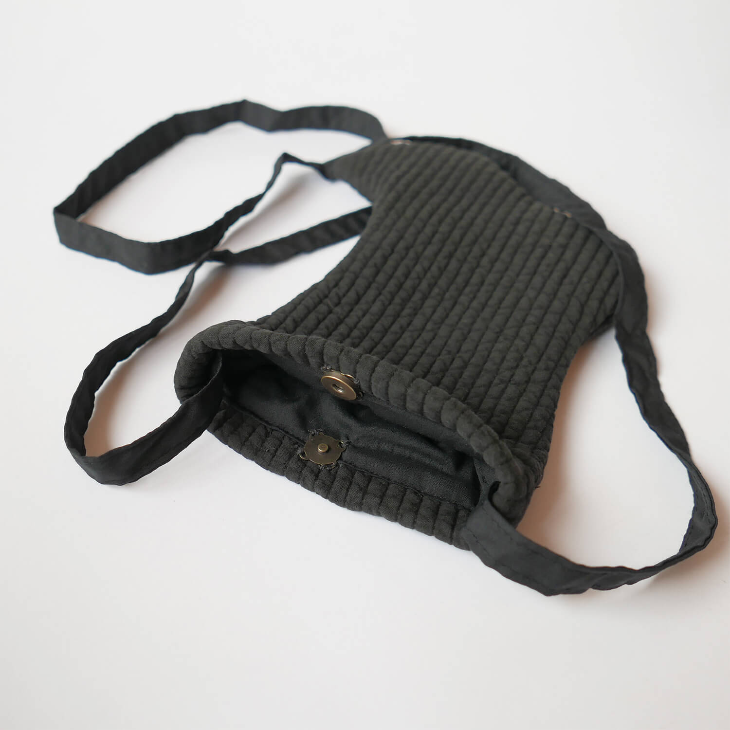 日常着の中にをユニークを。黒なので目立ち過ぎず、シックな装いにもぜひ。