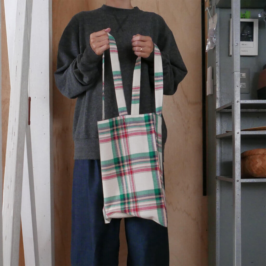 size: W 35.5 x L 38 cm、持ち手長さ64cm 綿ネル 100% 布地・縫製 / KOREA タグ / JAPAN